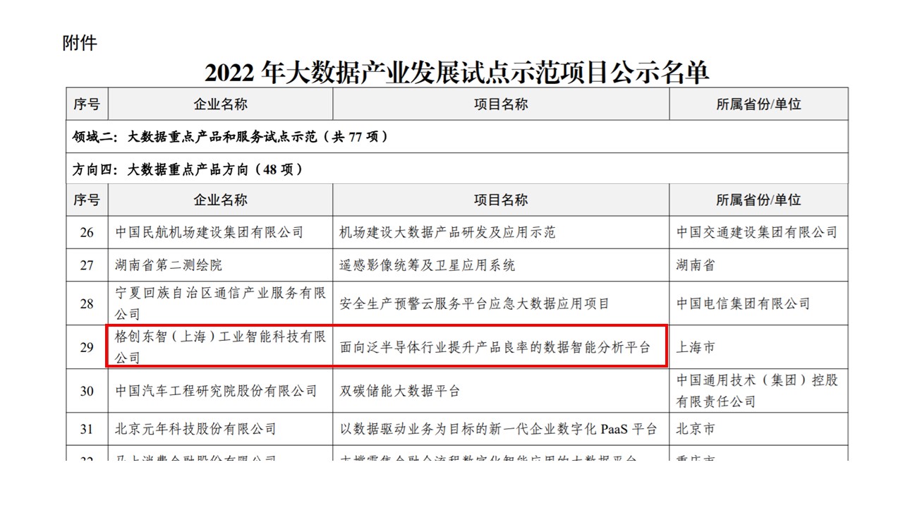 k8凯发东智携「半导体良率提升智能分析平台」入选工信部大数据产业发展试点示范项目