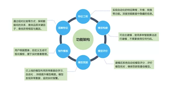 在功能架构上,GeekMind共分为数据预处理、特征挖掘、构建模型、模型管理、在线预测及工程管理6层架构,可实现自动化的数据预处理及特征降维、转换等,并可应用现有机器模型进行调参建模、选优,以及在线分析异常的监控与预警;而模型管理与工程管理功能,则可满足用户对任意建模节点回溯查看,以及以工程为单位对案例及模型进行统一管理的需求。