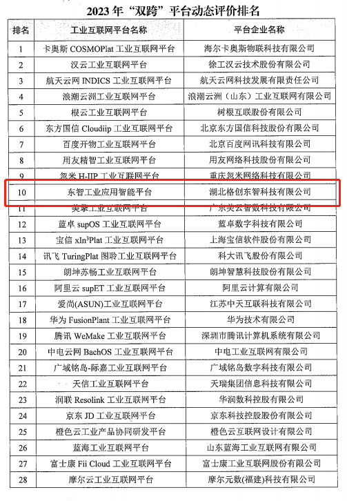Changjiang Net News (Reporter Zhao Mengmeng, Correspondent Wu Jingxuan) Recently, Changjiang Net reporters learned from the Industrial Internet Platform Innovation Cooperation Center that, under the guidance of the Ministry of Industry and Information Technology's Information Technology Development Department, the dynamic evaluation of the 2022 cross-industry and cross-domain industrial internet platforms (hereinafter referred to as "dual-cross" platforms) has been successfully carried out. Among them, Hubei GTRONTEC Technology Co., Ltd. (hereinafter referred to as "GTRONTEC")'s Dongzhi Industrial Application Intelligent Platform (hereinafter referred to as the "Dongzhi Platform") advanced six places, ranking tenth nationally.
