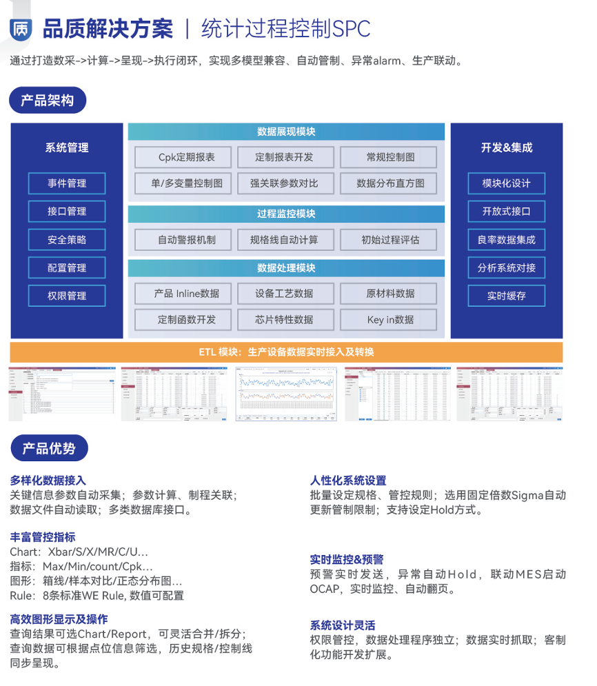 As a leading manufacturer in the vertically integrated field of chip design and manufacturing, device packaging and testing, terminal sales and service, the client gradually realized in the pursuit of higher production quality that traditional SPC systems have core pain points such as limited data monitoring scope, single analysis and control functions, and lack of customization and secondary development support, unable to meet more detailed and complex business needs. There is an urgent need to find a new solution with standardized systems, diverse system interfaces, support for diverse monitoring data, and rich customization functions.