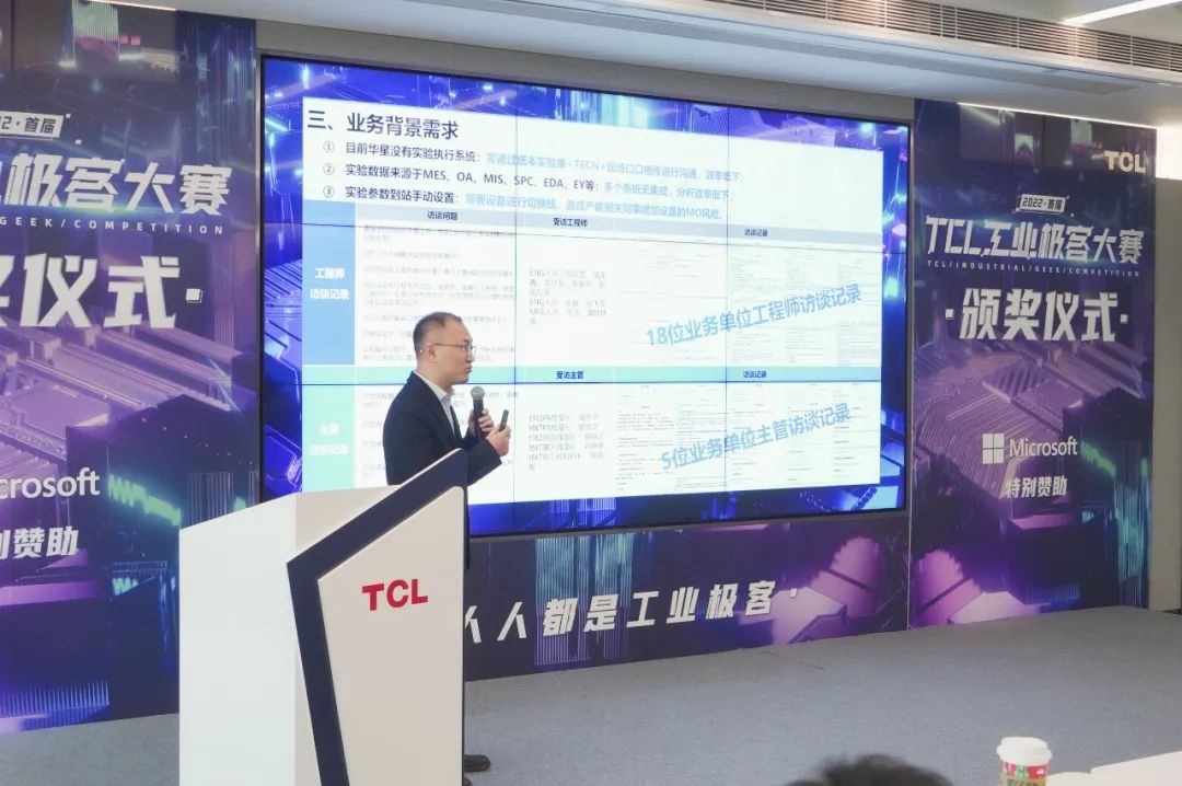 In July 2022, the first Industrial Geek Competition was officially launched with the goal of cultivating全员 digital capabilities and挖掘 micro-innovations. The competition, under the slogan "Everyone is an Industrial Geek," aimed to help TCL employees grow into new talents who develop with the enterprise and become the smallest innovation units for high-quality development.