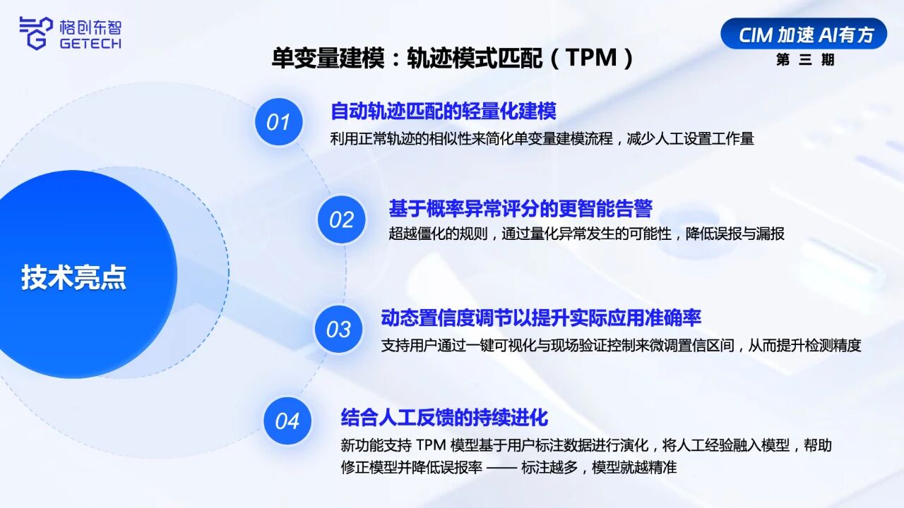 TPM不再依赖人工设定监控窗口,而是自动学习正常晶圆加工的全过程参数轨迹,通过模式匹配度计算“异常概率”,在显著降低了单变量监控的误报率的同时,支持用户通过可视化界面微调置信区间,并基于操作反馈进行在线自主学习。
