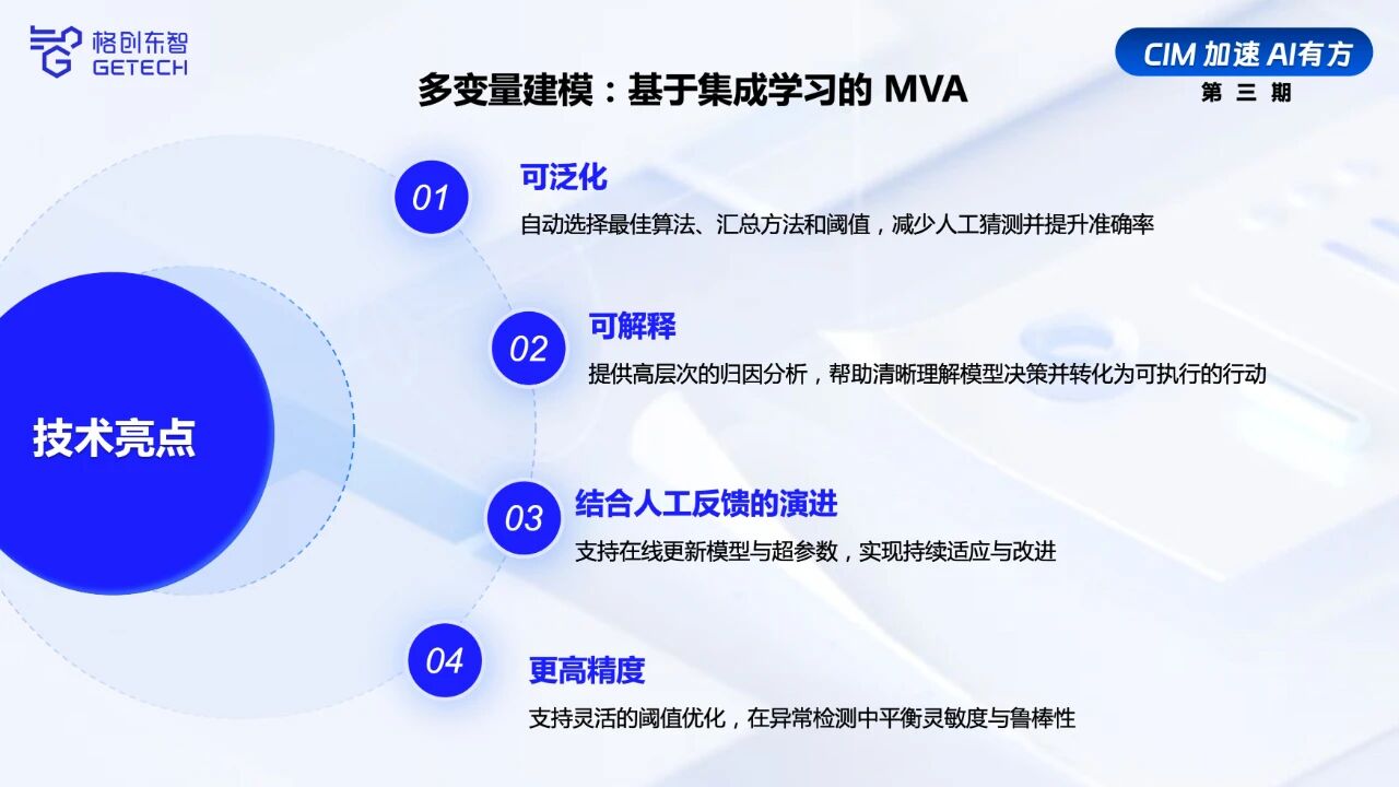 致力于解决变量间的协同与耦合问题。面对复杂故障,MVA引擎自动选择最佳算法与汇总方法,将多维度参数融合输出为一个综合异常分数。其关键价值在于提供变量重要性排序,让工程师不仅能知其然(是否异常),更能知其所以然(哪些参数导致异常),实现了模型决策的可解释性。