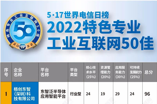 荣登榜首 | 东智泛半导体应用智能平台入选“2022特色专业工业互联网50佳”