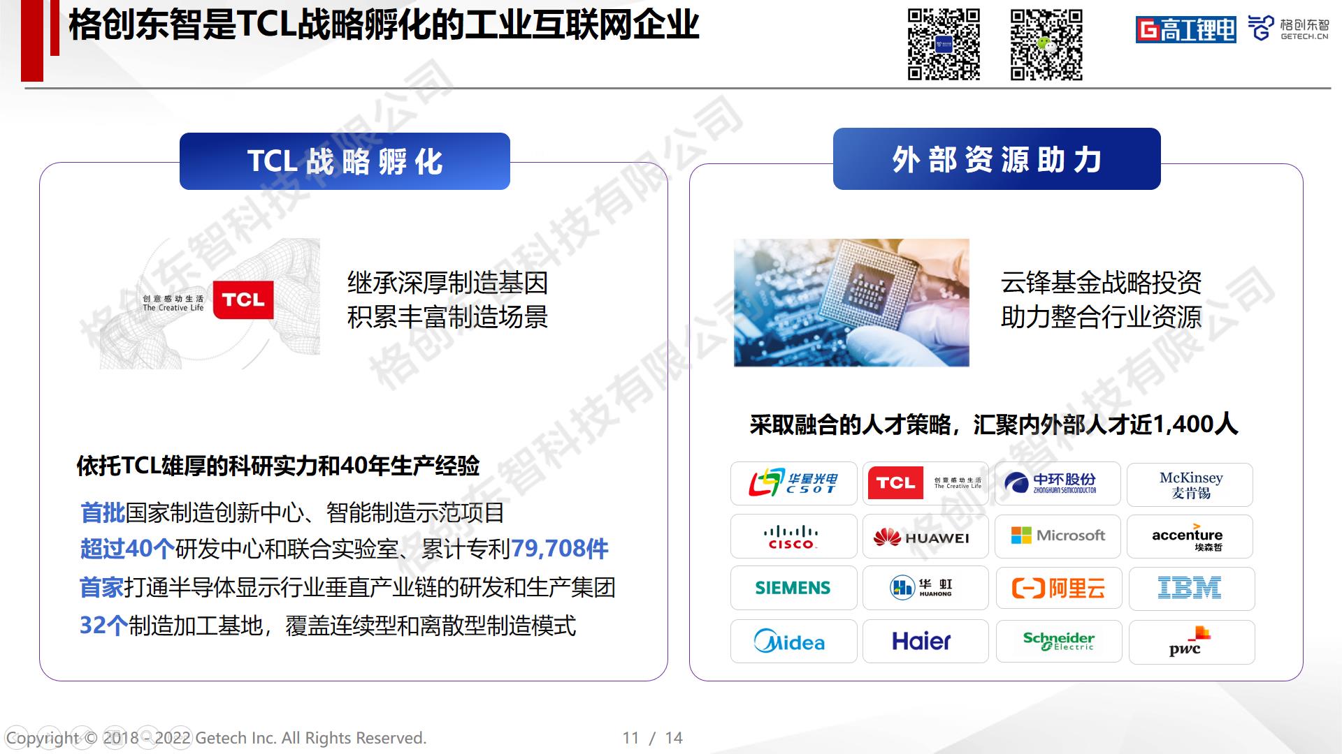 最后一点时间介绍一下k8凯发东智。k8凯发东智孵化于TCL集团,现在有1400多名员工服务着泛半导体,新能源,3C及汽车行业客户。我刚才讲的很多标杆工厂案例,都是基于我们的工业互联网平台去构建的:从底层数据采集,到物联网平台,到大数据平台,到利用这些数据去做一系列相关的应用,比如设备健康管理、生产管理、品质分析优化,企业运营,节能减排等等,为客户提供一体化解决方案,帮助客户打造行业级智能工厂。