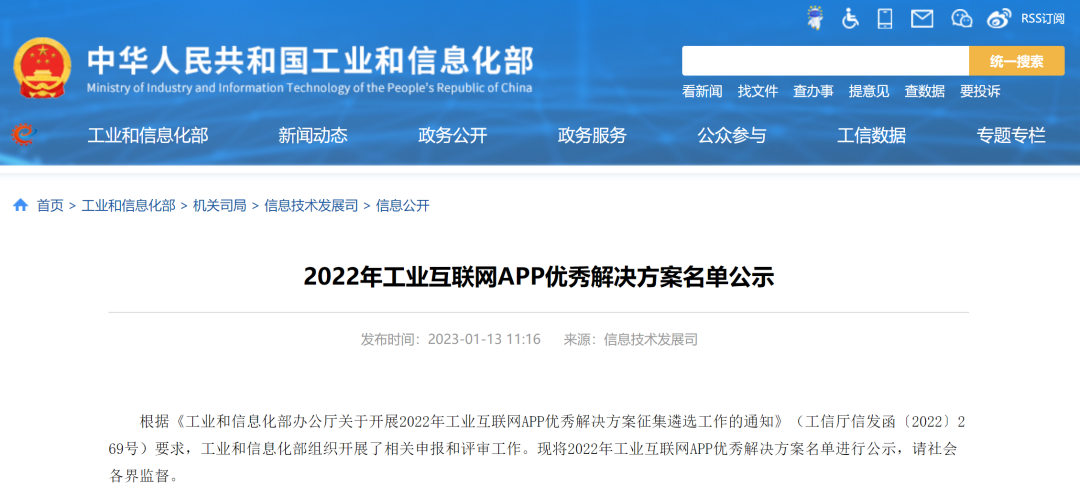 蝉联!工信部2022年工业互联网APP优秀解决方案名单公布