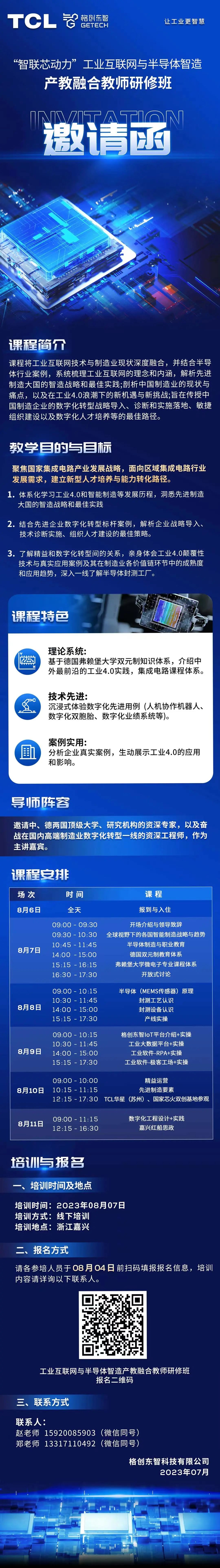 “智联芯动力”——k8凯发东智工业互联网与半导体制智造产教融合教师研修班邀请函