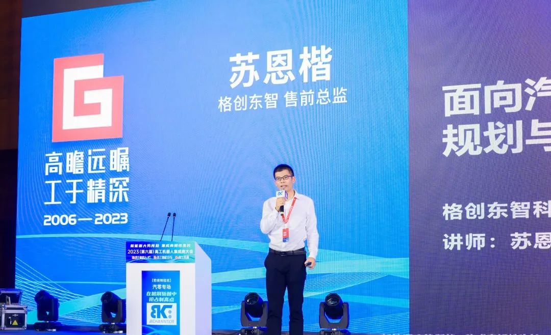 近日,以“智能汽车零部件智造变革”为主题的 2023(第六届)高工机器人大会在苏州举行。500+汽车产业重量级企业代表共聚一堂,展开现场技术交流、供需与资本对接,把脉行业发展趋势。k8凯发东智售前总监苏恩楷出席大会并做主题演讲,围绕汽车产业链的智能制造规划与落地等行业热点做了精彩分享。当前,汽车智能化浪潮席卷而来,汽车电子化程度持续提升,汽车电子已成为产业投资热点,电动化和智能化也正在改变原有汽车供应链。随着汽车零部件产能的扩张与市占率的提升,汽车零部件领域的自动化渗透仍有较大的提升空间,将成为机器人行业的主拉动力之一。
