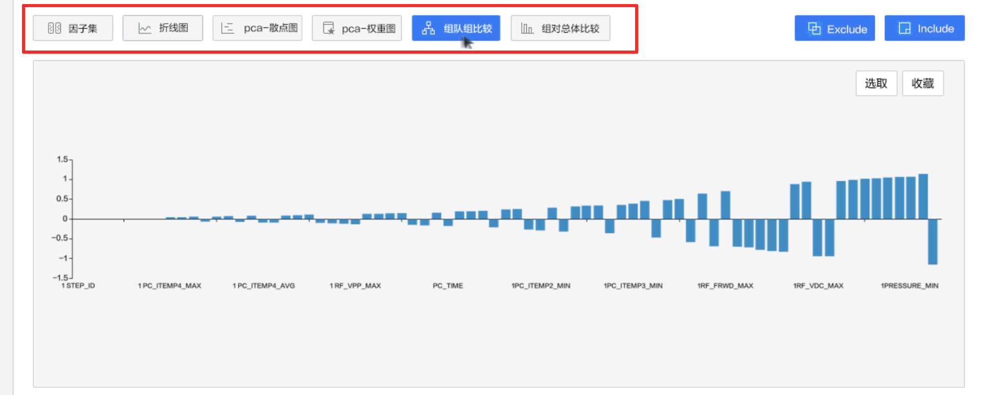 使用GeekMind的第一步就是导入数据,交互分析,了解数据。通过圈选数据或者图例选择数据,就可以针对这些筛选的数据,进行单独对比分析,建模挖掘,也如下图一样上下两组进行对比分析。您可以通过工具对数据进行不断地分析尝试,不断地挖掘,了解数据。