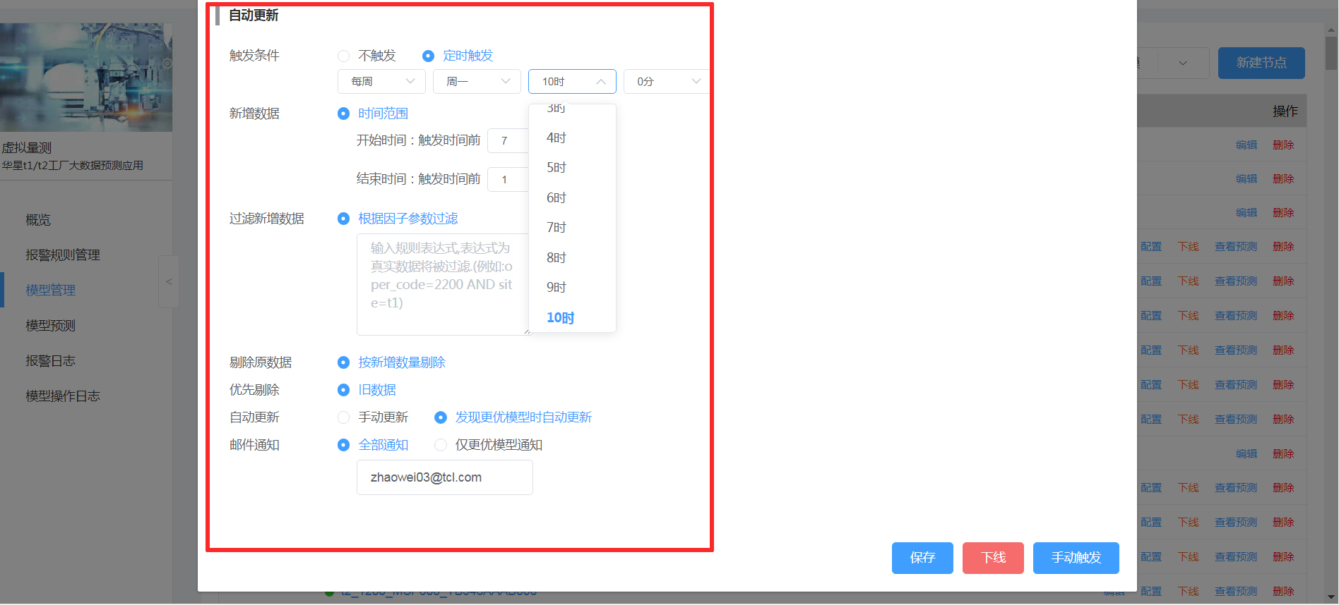 模型上线后仍然会自学习自更新,您可以对自动更新参数进行设置。更新后不会直接覆盖原有模型,而是自动生成新的模型,这时您只要根据需求选择切换或者不切换即可。