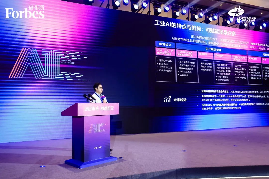 与传统数字化相比,工业AI已展现出颠覆性的优势。李楠博士在演讲中指出,工业AI已取得显著进展,但输出准确性仍有待提高,探索有人工兜底或非核心生产场景成为首要选择。同时,随着模型能力和小模型工具的成熟,AI将在决策与控制方面迎来新的突破,逐步实现全流程智能化。而且,行业领域知识的积累对于价值创造至关重要,高质量行业数据和工业语料的投入能够使AI模型内化专家经验,提升输出准确率,进而开发出具有实际应用价值的AI解决方案。