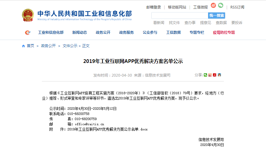 2019年底,为贯彻落实国务院《关于深化“互联网+先进制造业”发展工业互联网的指导意见》,工信部开展了2019年工业互联网APP优秀解决方案征集活动,加强典型经验总结和优秀案例推广,推动工业互联网APP生态建设。