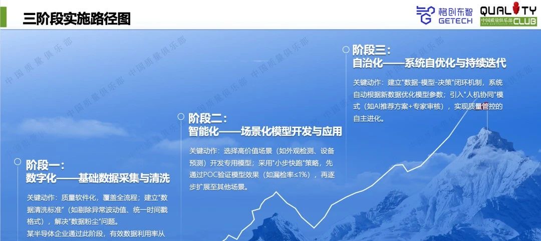 在落地路径上,赵志现身说法了k8凯发东智打磨AI+质量管理解决方案的数字化、智能化、自治化三阶段实施路径。第一阶段即通过质量软件化和数据清洗标准,解决数据散落难题;第二阶段,k8凯发东智选择高价值场景(如外观检测、设备预测)开发专用模型,采用“小步快跑”POC策略逐步扩展;最后,k8凯发东智建立了“数据+模型+决策”闭环机制,实现质量管控的自治化。