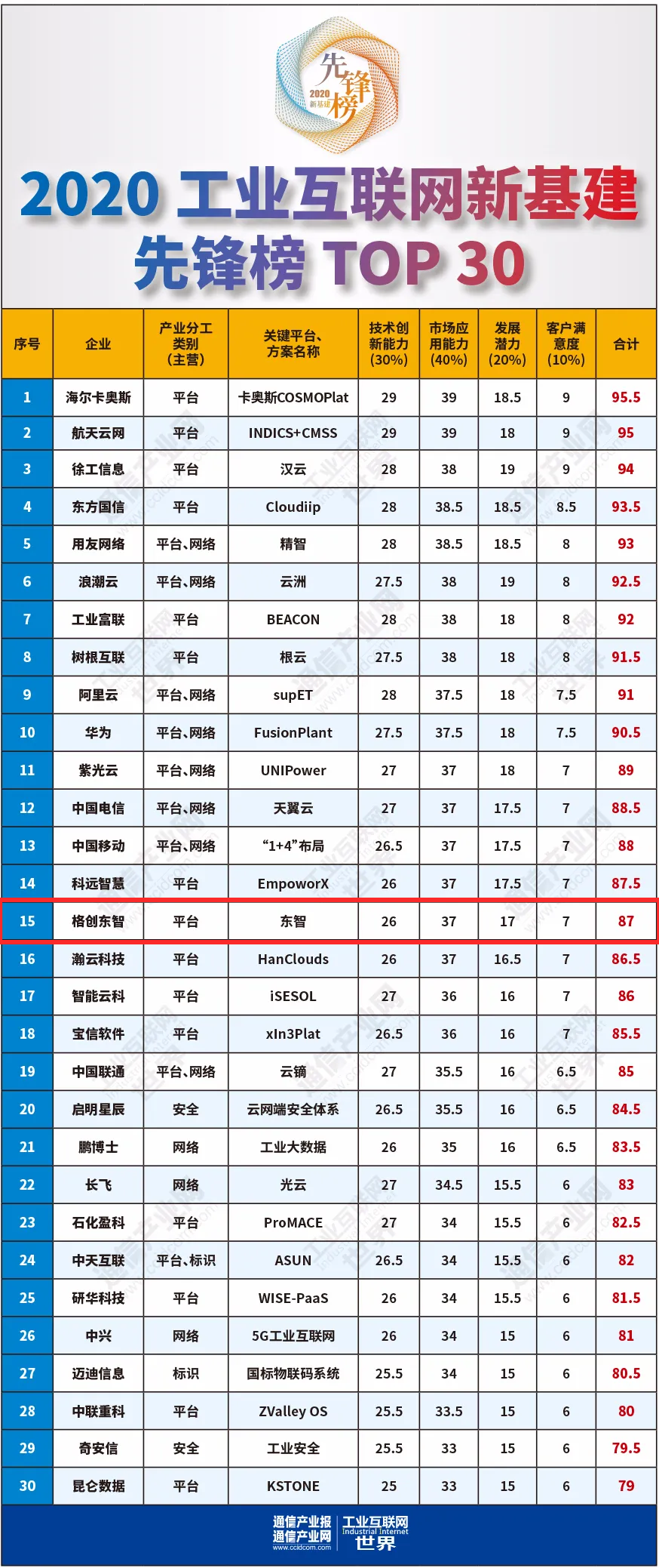 | 新基建先锋企业TOP 15