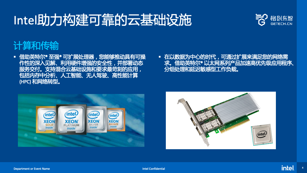 存储:英特尔提供的傲腾技术分为两块——内存和固态盘,都是在云基础设施当中非常重要的基础设施。